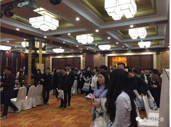 上午八点三十分,展会还未正式开始,酒店大厅就已聚集了众多学生和家长。新干线教育集团留学顾问和课程顾问老师热情地为学生和家长答疑解惑,登记入场。