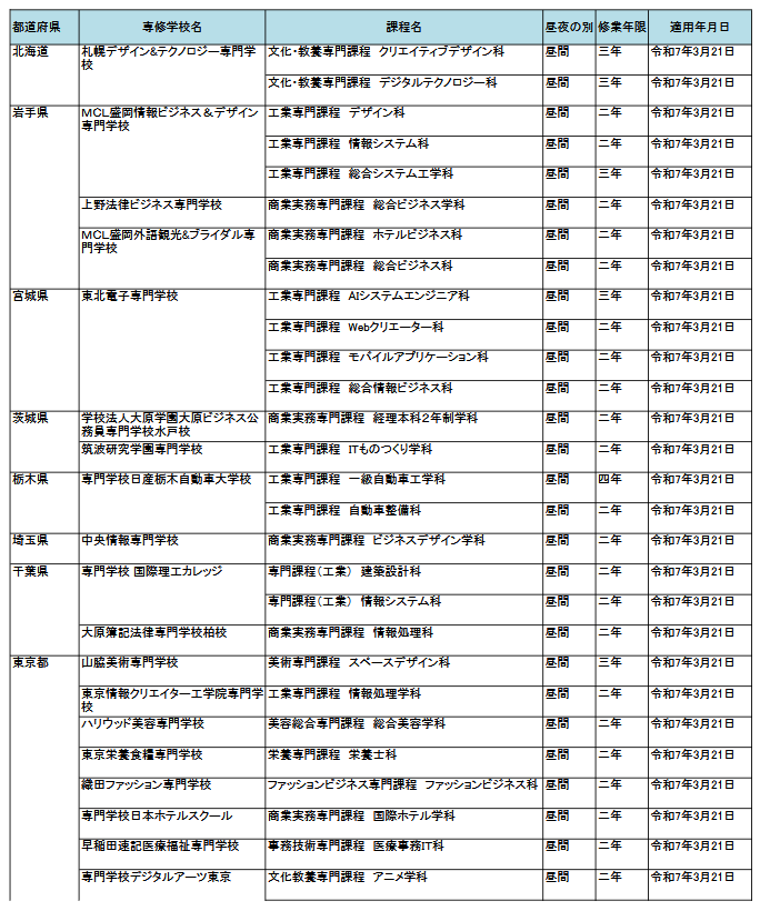 从都道府县来看,东京都(10所学校19个学科)、爱知县(10所学校18个学科)和大阪府(9所学校21个学科)这三大都市圈的认定数量尤为突出。