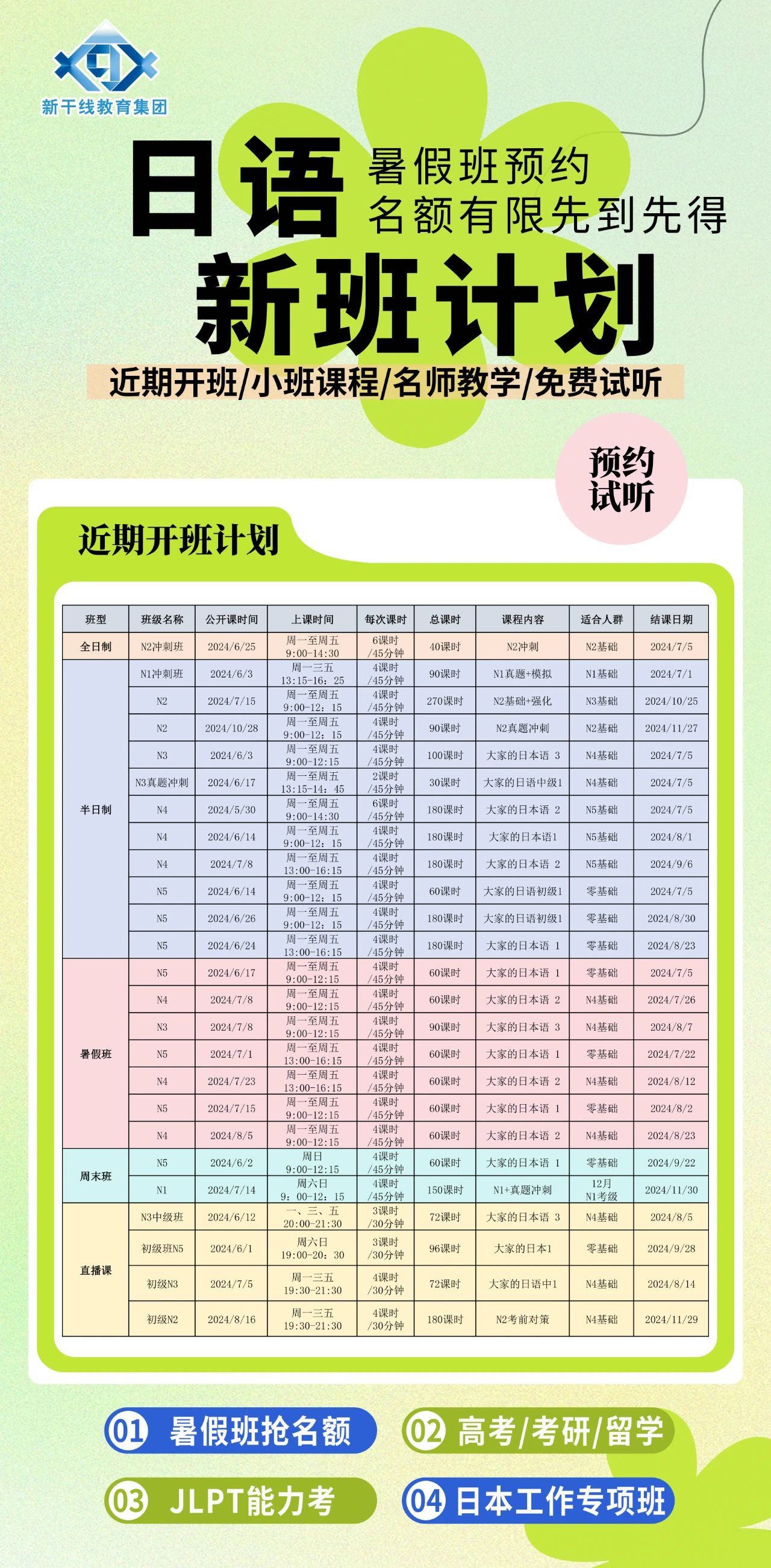 我们教师团队多年深耕日语教学培训,教学经验丰富,了解学生的日语学习痛点与需求。帮助更好地理解日语的语境;结合考纲,分科教学,结合真题分析考点。