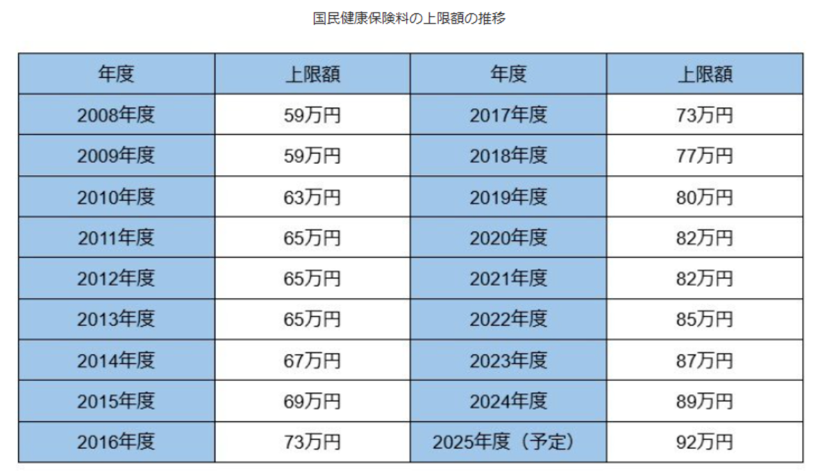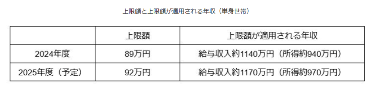 2024年的最高金额(基本税和后期高龄者支援税合计)为89万日元,预计2025年增加3万日元,达到92万日元。 2025年,保险费为17万日元,与上年相同,国民健康保险费和护理保险费合计上限为109万日元。