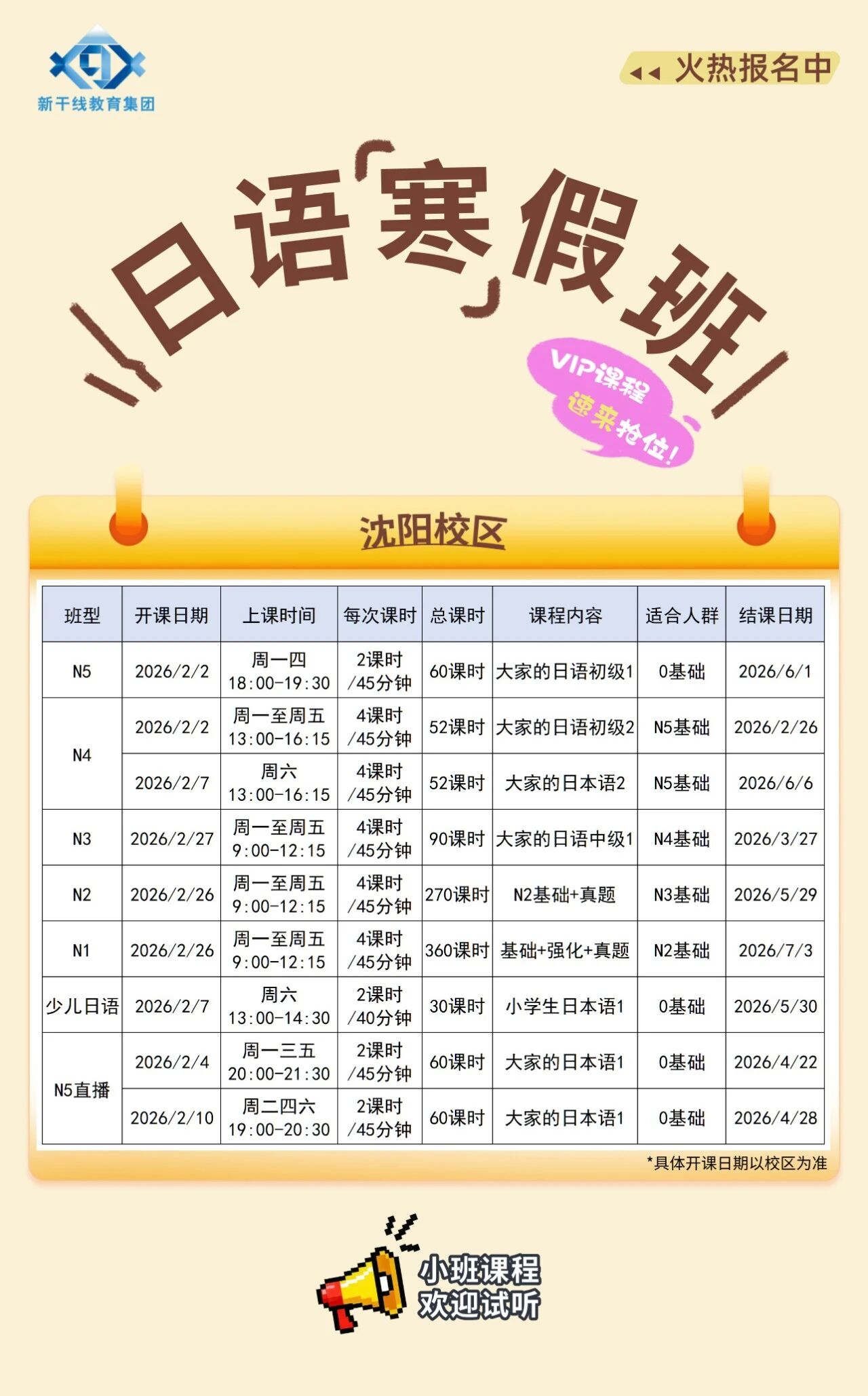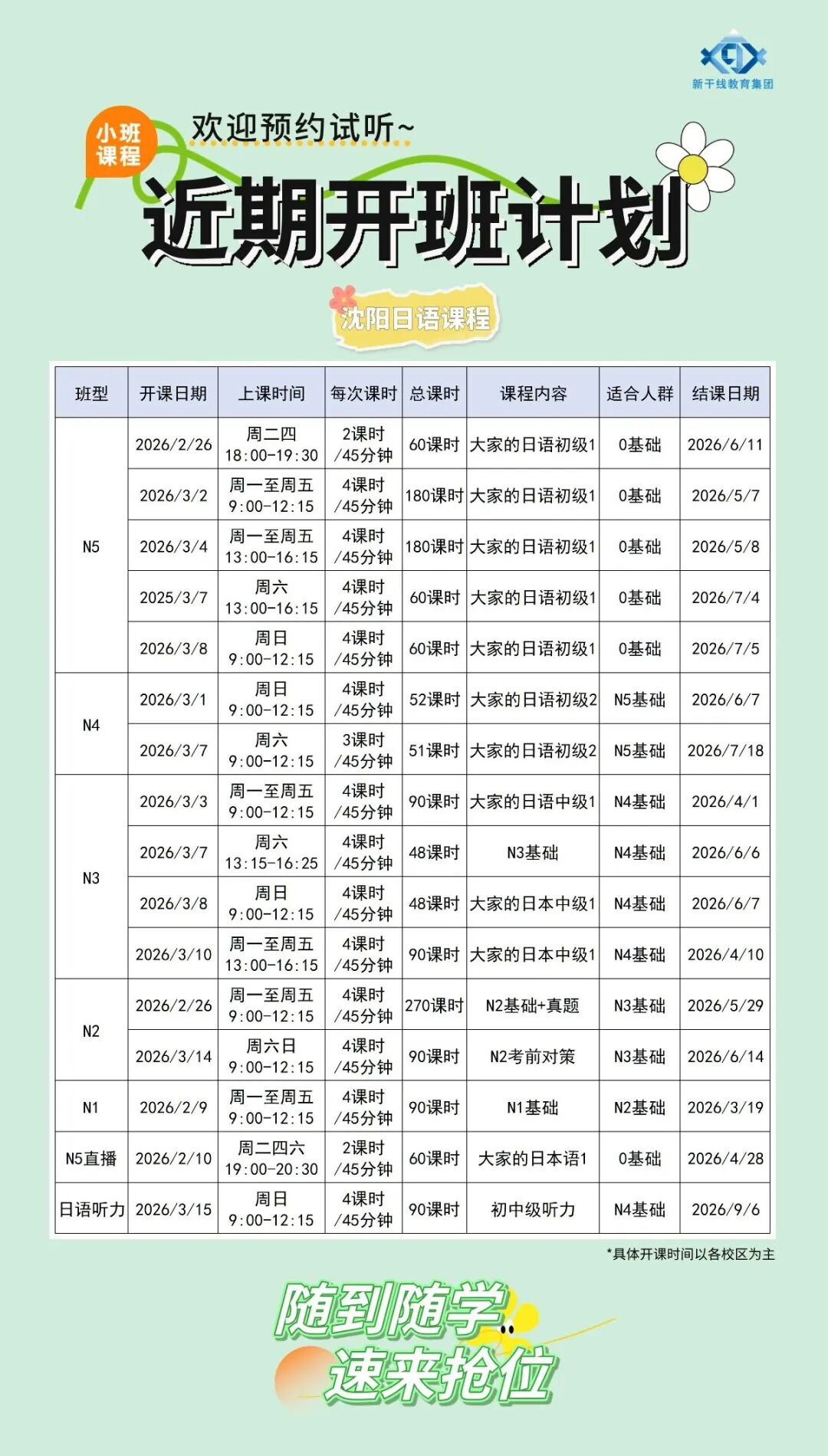 日语N2冲刺课程2月26日全新开班,告别临考突击刷题,为未来留学/升职/转岗/就业,提前储备一张真正有含金量的日语证书~ 上课日期:2026.2.26-2026.5.29上课时间:周一至周五9:00-12:15适合人群:N3基础总课时:270课时上课 |
